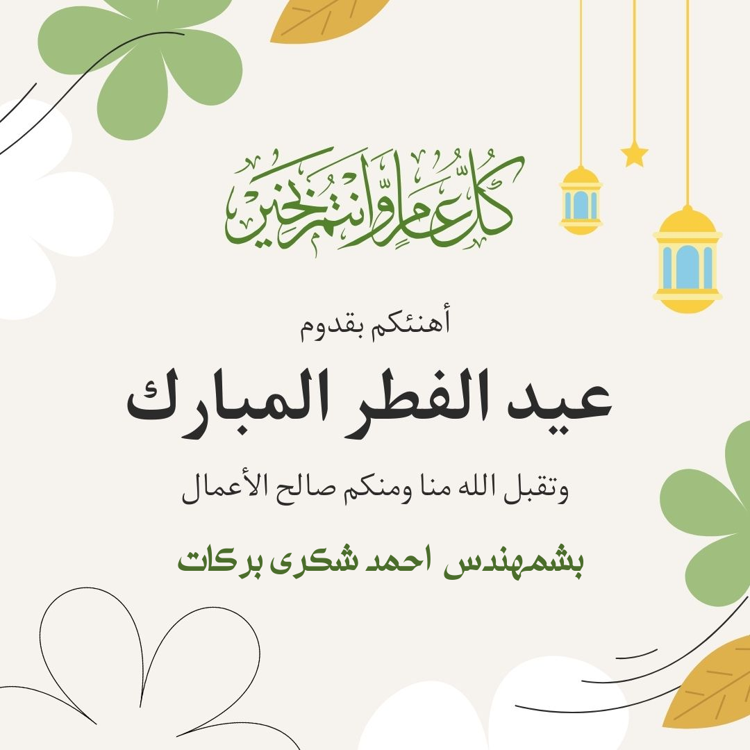 تحتوي هذه الصفحة على صورة تهنئة عيد الفطر المبارك مقدمة من بشمهندس احمد شكرى بركات