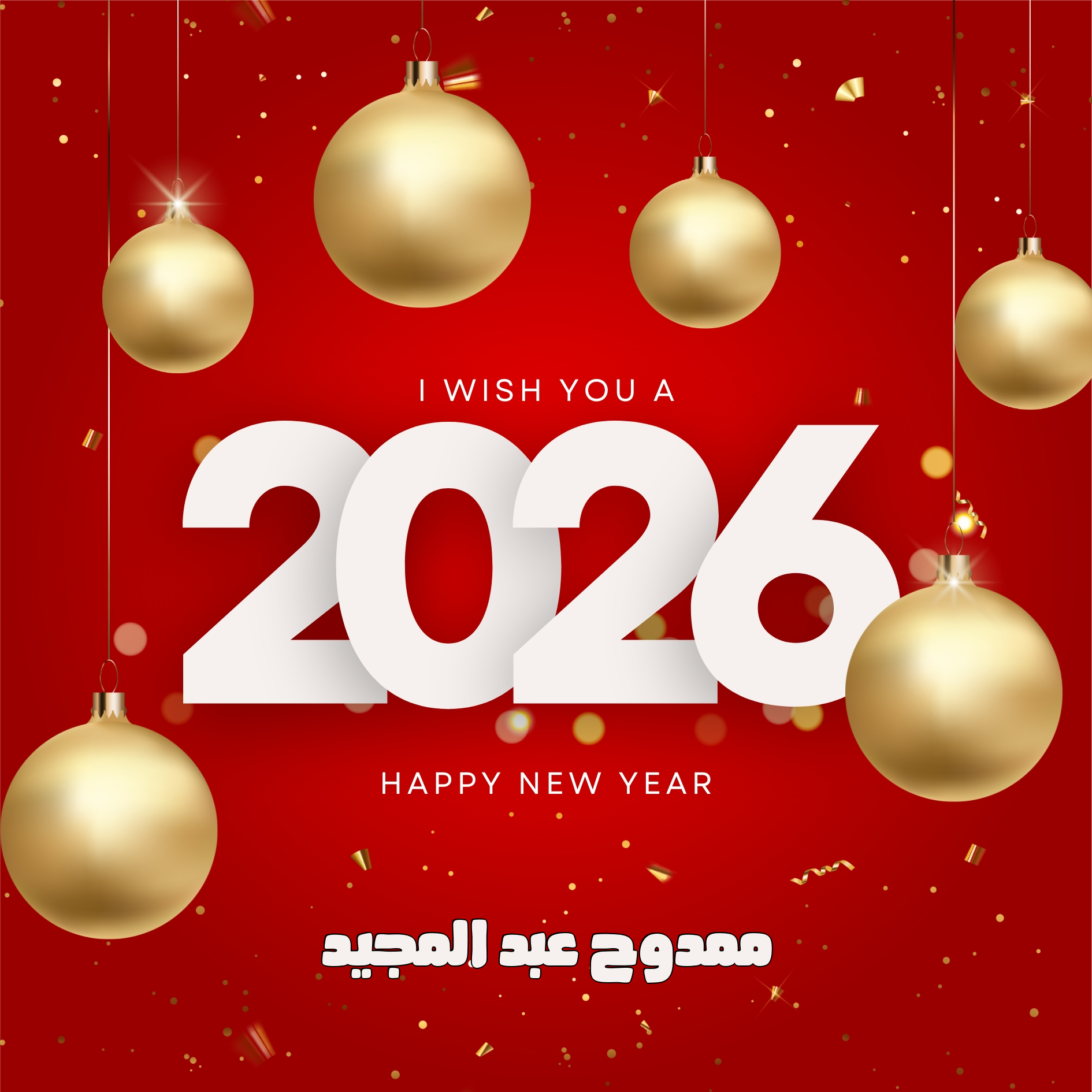 اكتب اسمك على صورة تهنئة العام الميلادي الجديد 2026، صور تهنئة مميزة بتصميمات رائعة بمناسبة حلول عام 2026، جعله الله عام خير وبركة وعاماً تنقضي فيه الغمة وتنتصر فيه الأمة، وكل عام وأنتم بخير.