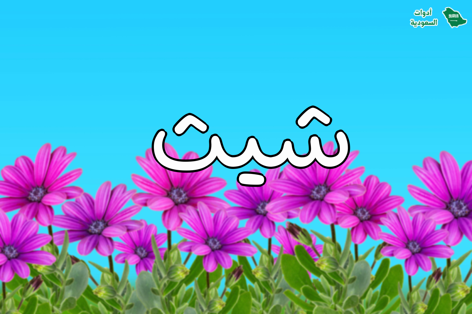 تحتوي هذه الصفحة على اسم شيث على خلفية تحتوي ورود وزهور مميزة