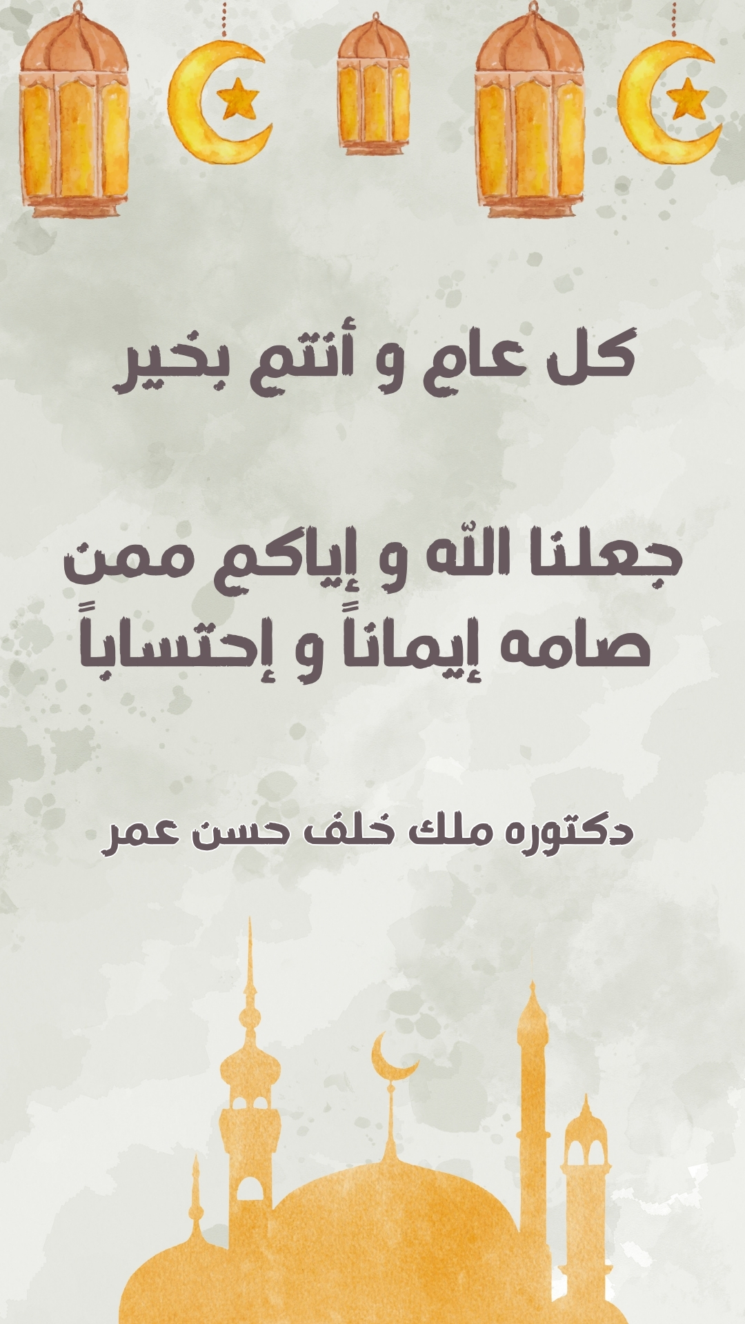 تحتوي هذه الصفحة على بطاقة معايدة شهر رمضان باسم دكتورهملك خلف حسن