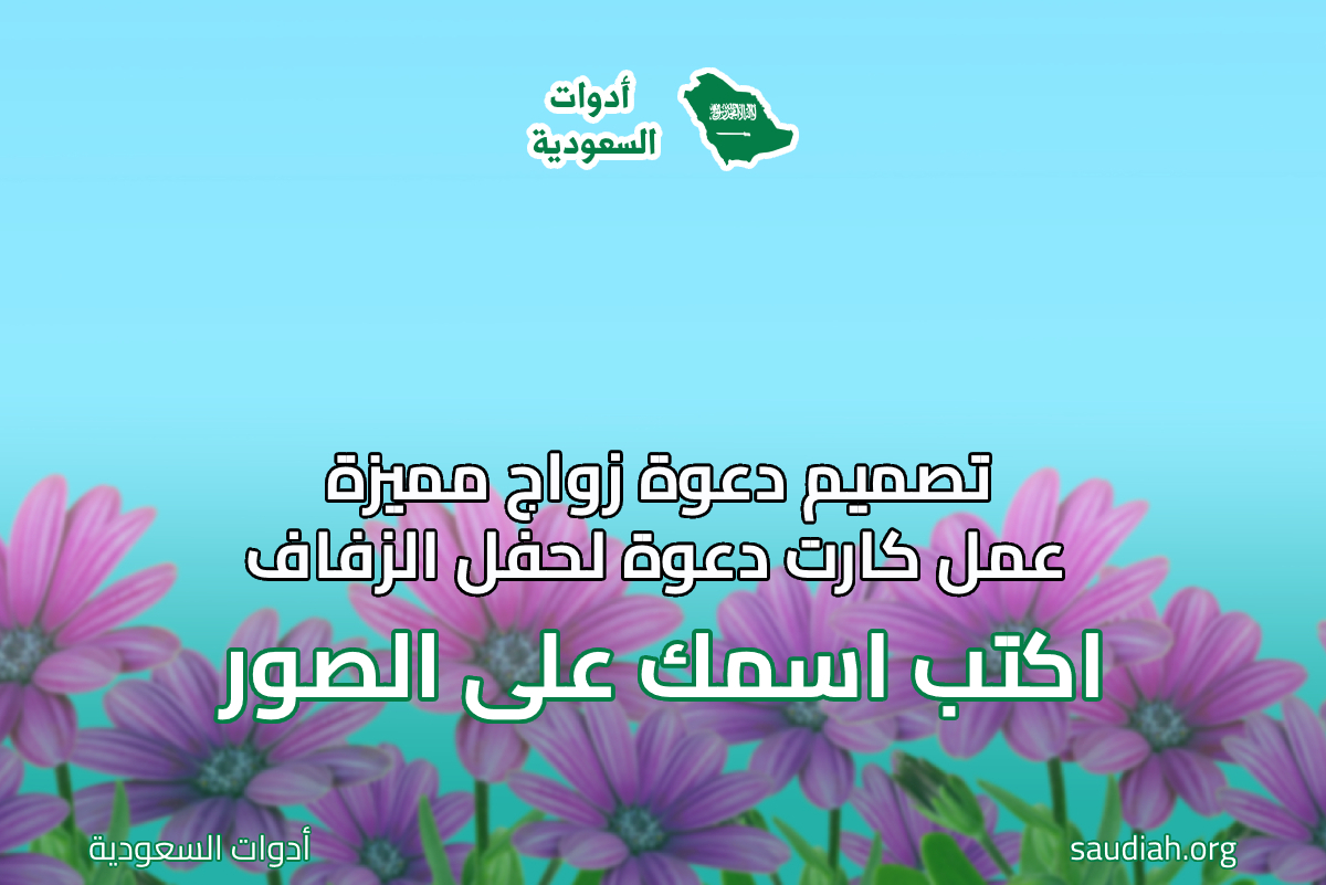 مرحباً بك في موقع أدوات السعودية الذي يقدم العديد من الخدمات الحصرية والمميزة، حيث نقدم لكم اليوم خدمة مميزة وجديدة تهم كل المقبلين على الزواج والذين اقترب ميعاد حفل زفافهم، وهي خدمة إنشاء دعوة زفاف حيث تستطيع من خلال هذه الخدمة كتابة اسمك واسم زوجتك على تصميمات متعددة لبطاقة دعوة الزفاف كما يمكنك إدخال موعد ومكان حفل الزفاف، وبالتالي سوف تحصل في النهاية على بطاقة دعوة فرح مميزة، والتي تستطيع إرسالها لكل الأهل والأقارب والأصدقاء لدعوتهم إلى حفل زواجك، ولعمل كارت دعوة زواج باسمك واسم زوجتك تابع الخطوات التالية.