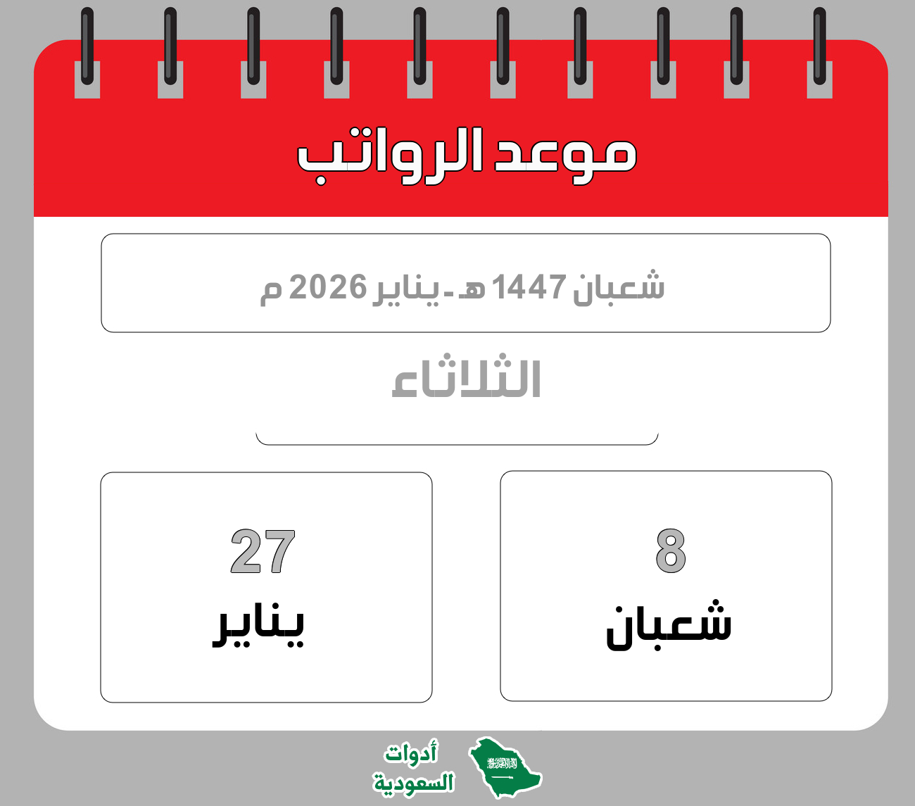 موعد الرواتب شعبان 1447 هـ - يناير 2026 م